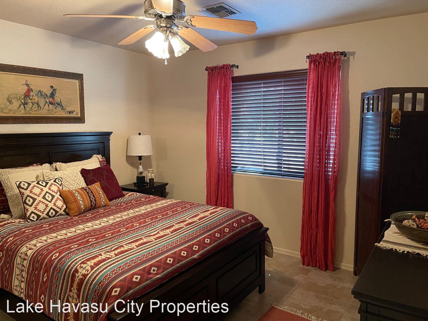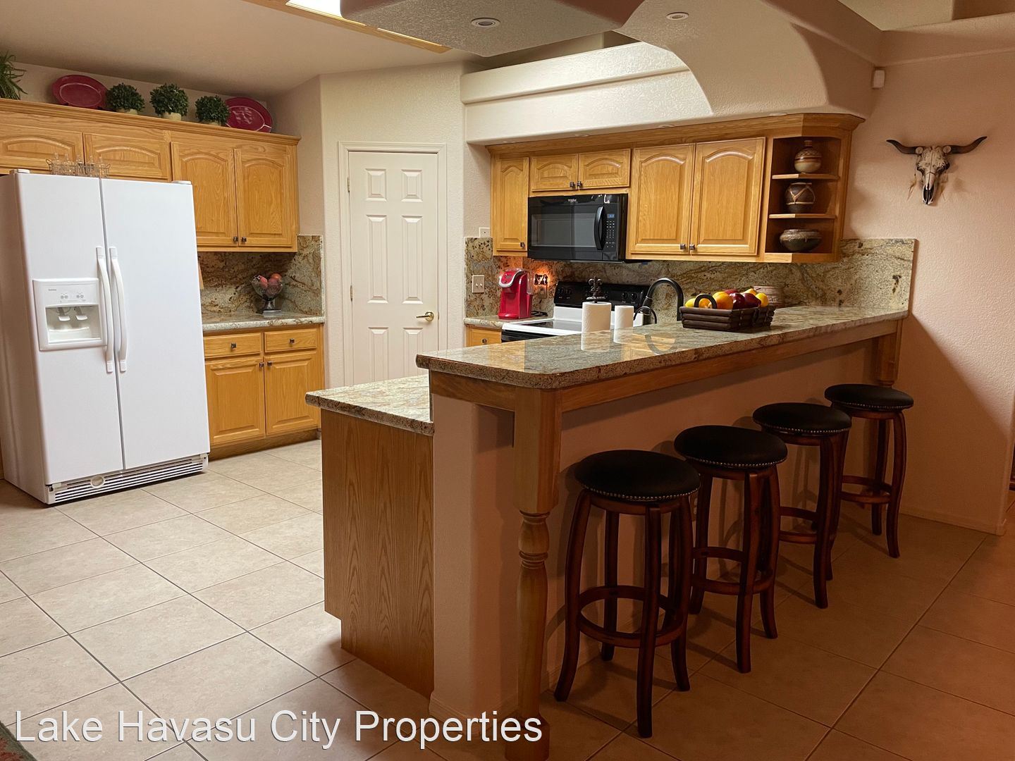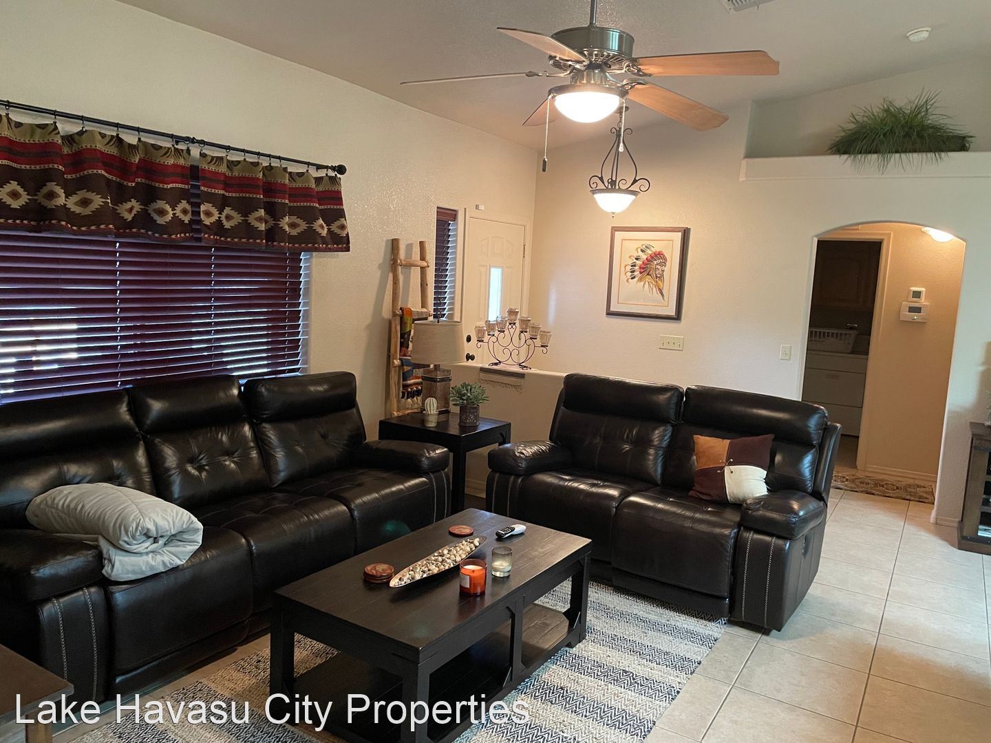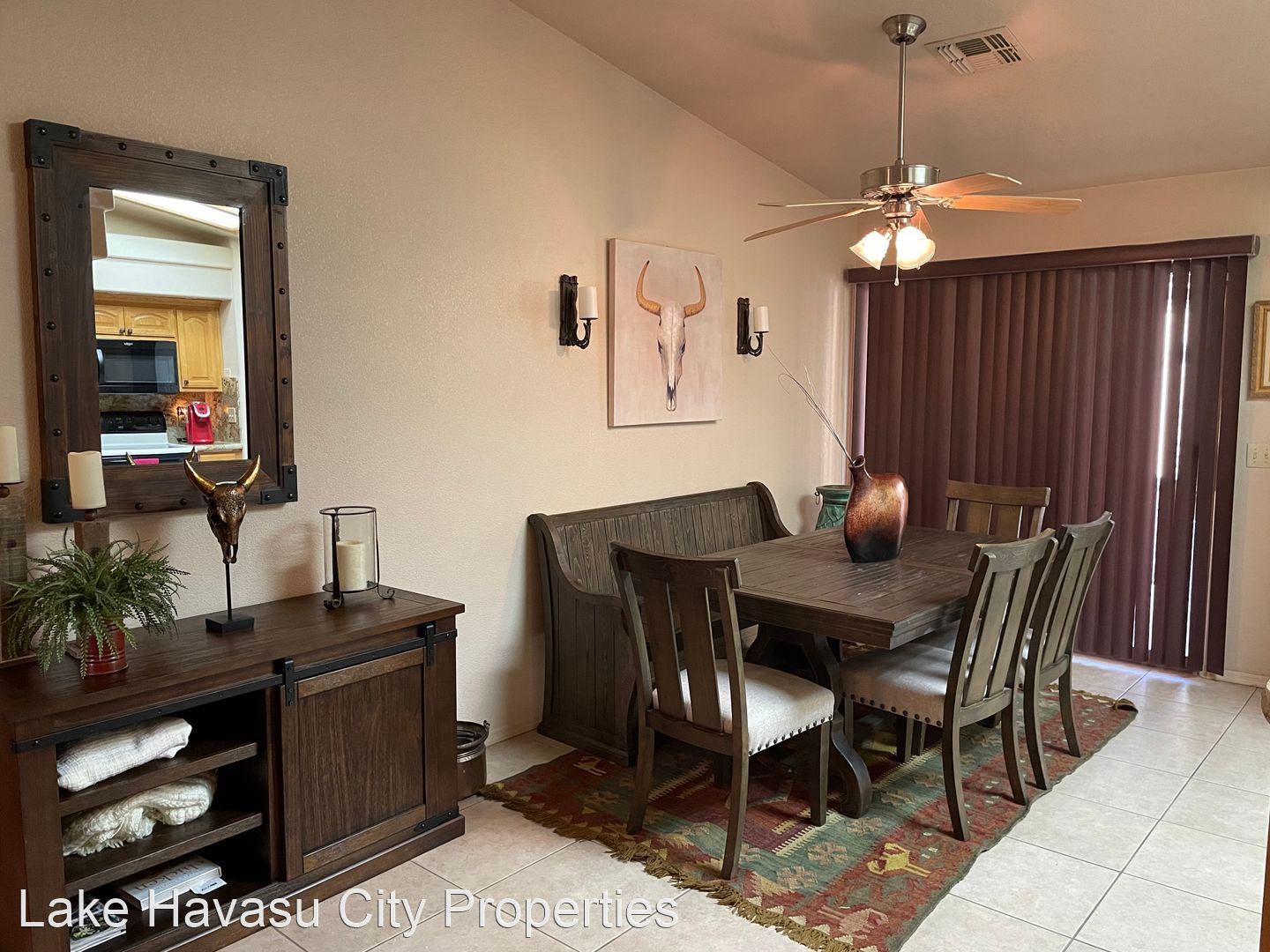 Furnished Winter Rental 2023-2024 - Available November-April 2023/2024. This gorgeous remodeled and updated furnished Winter Rental is located on the Southside of Havasu. Close to Hwy 95, Sarah's Park (where many of the Winter festivals are hosted!), The Skate Park, Race Track and so much more! This home features tilde floors through out, granite countertops, open kitchen, dining and living room concept. Vaulted ceiling in living room and master bedroom. Master bedroom features a king size bed, tiled walk in shower with separate soaking tub. Large master closet. Fenced back yard, large covered patio, patio furniture and barbecue pit available. Elegantly decorated through out! Cable provided, No Internet. $100 cap on electric. We require an application prior to showing, apply online at www.havasurentalhome.com No pets! Ask for Liela
