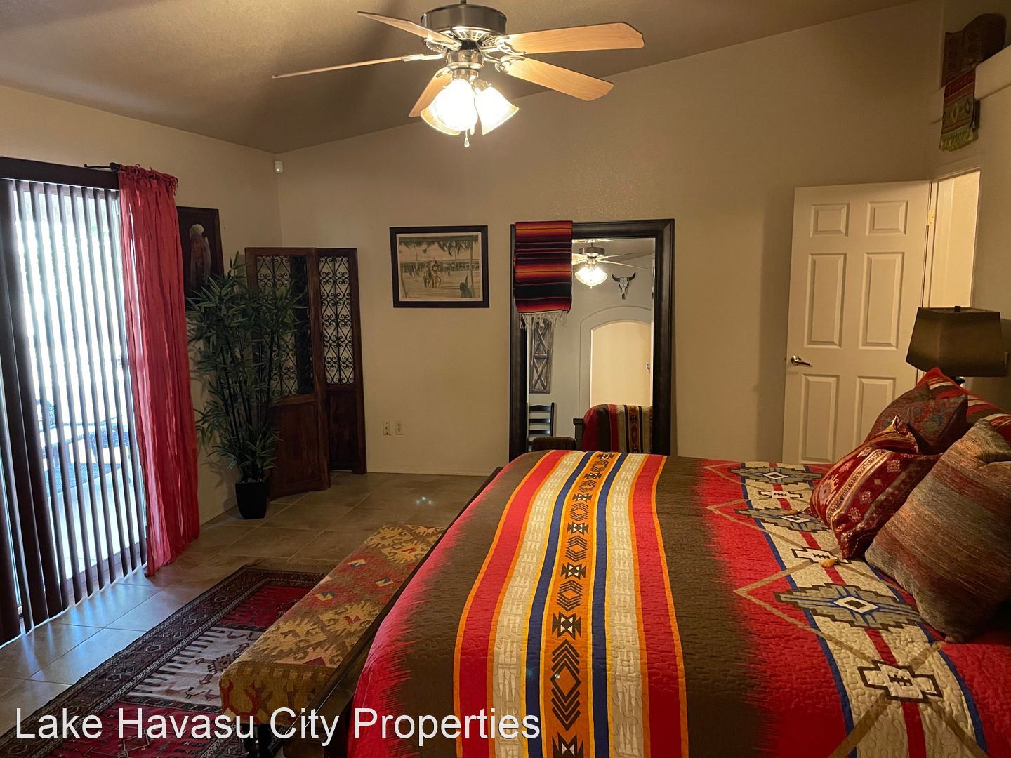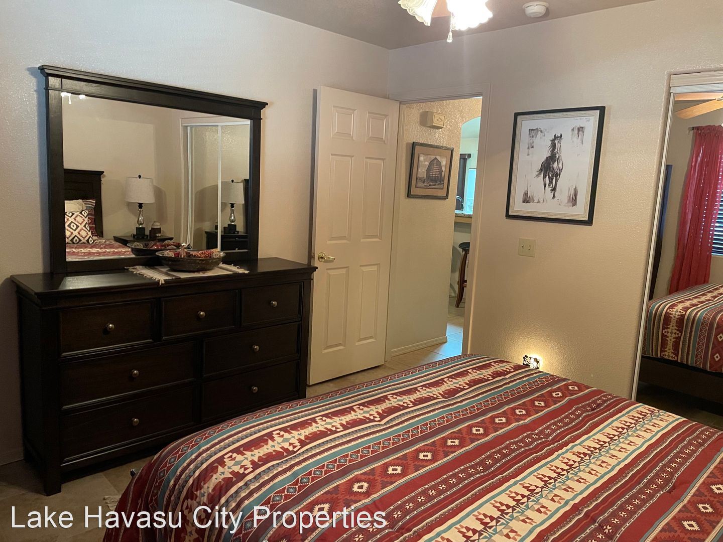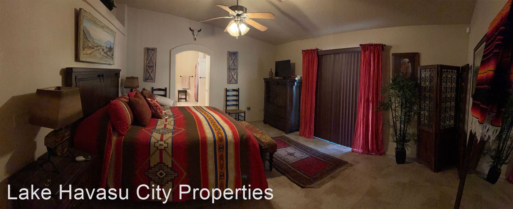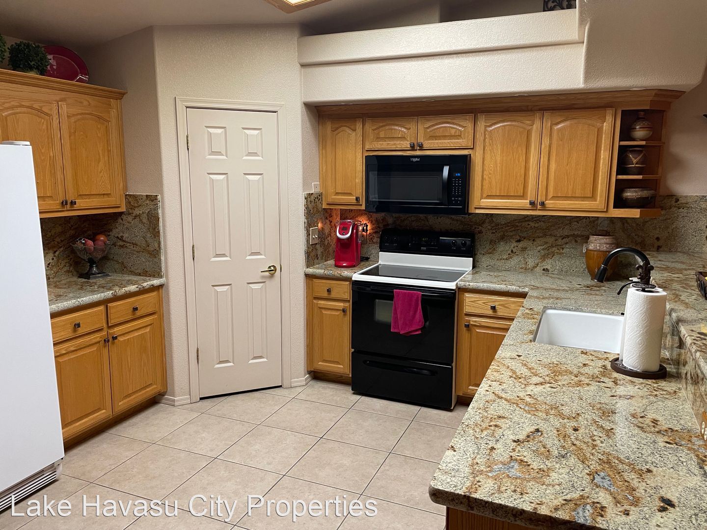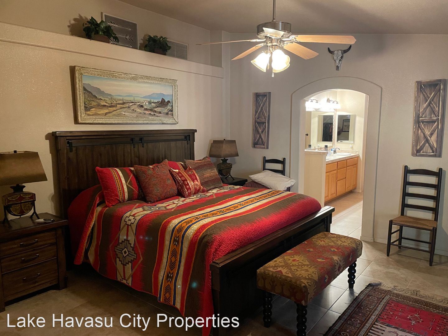 Furnished Winter Rental 2023-2024 - Available November-April 2023/2024. This gorgeous remodeled and updated furnished Winter Rental is located on the Southside of Havasu. Close to Hwy 95, Sarah's Park (where many of the Winter festivals are hosted!), The Skate Park, Race Track and so much more! This home features tilde floors through out, granite countertops, open kitchen, dining and living room concept. Vaulted ceiling in living room and master bedroom. Master bedroom features a king size bed, tiled walk in shower with separate soaking tub. Large master closet. Fenced back yard, large covered patio, patio furniture and barbecue pit available. Elegantly decorated through out! Cable provided, No Internet. $100 cap on electric. We require an application prior to showing, apply online at www.havasurentalhome.com No pets! Ask for Liela