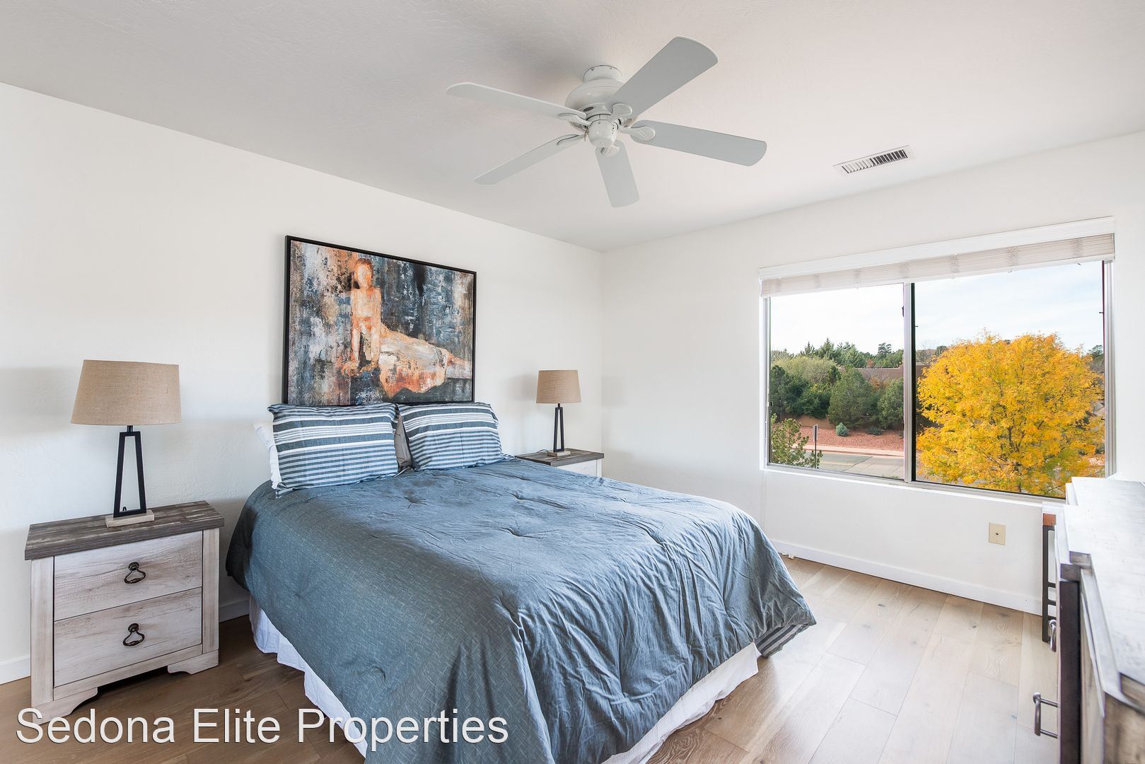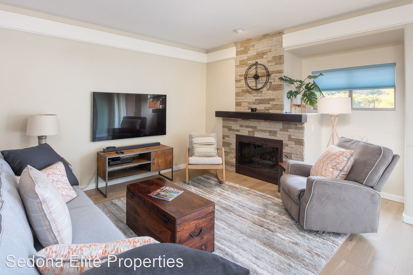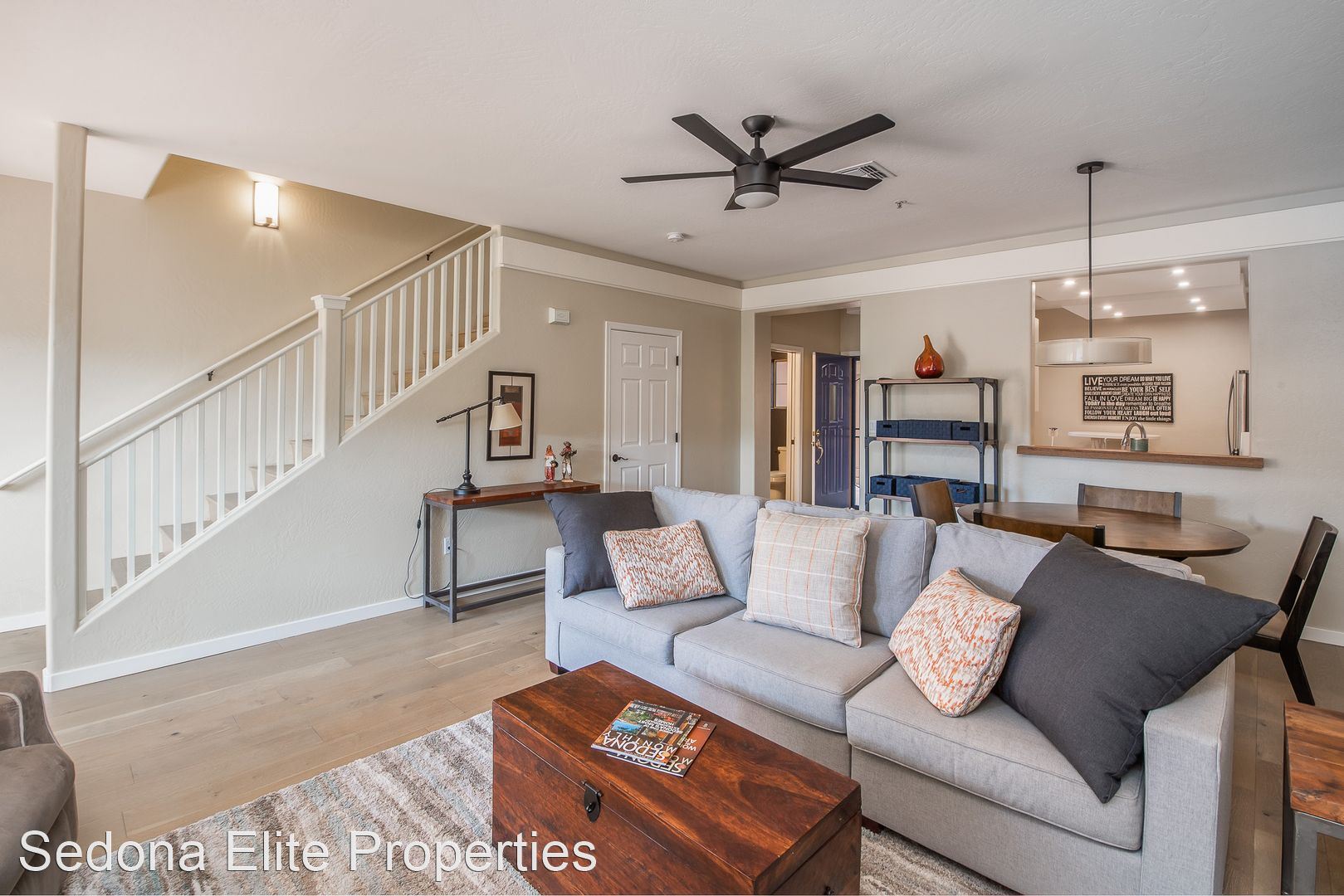 Furnished, Nepenthe, 1 Month Minimum - This coveted two story, two bedroom Nepenthe unit is located in the heart of West Sedona. Completely redone in 2020, this property boasts a completely refinished kitchen with stainless steel appliances, quartz countertops, and beautifully refinished cabinetry. Complete with a private gated entryway, enter the covered entryway into the refinished great room with a gas fireplace, dining area, and passthrough to the kitchen perfect for entertaining. Guests have access to a thoughtfully redone half bath on the first floor.