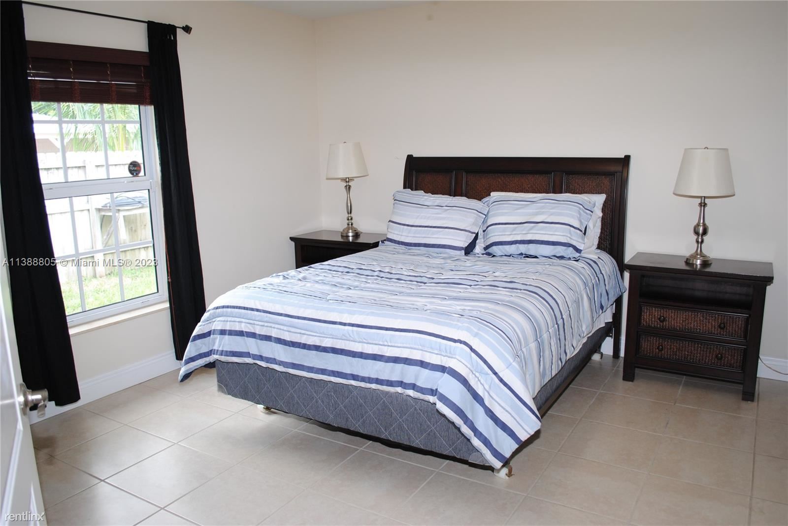 This well-maintained move-in furnished home is ideal for entertaining featuring a stunning fenced-in yard that has 3 covered gazebos all on pavers w/river rock. Immaculate landscaping with tropical palm trees, exterior electrical outlets & outdoor yard lighting for entertaining, plus security lights. Lovely front porch; sprinkler system with timer; solar panels & hurricane impact windows; kitchen upgraded granite countertops complementary backsplash, recessed & pin-lighting over breakfast bar; pantry, Tank-less water heater, laundry room with custom cabinets & storage closet; linen closet, master bedroom has a bath & walk-in closet. Spacious 1 car garage w/double driveway for parking 6 cars